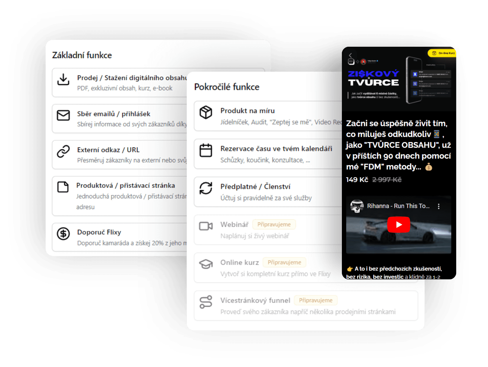 Nepotřebujete žádnou jinou prodejní aplikaci nebo web. Cílem Flixy je pomoct začátečníkům, tvůrcům, podnikatelům a expertům, ať už na sociálních sítích, či mimo ně vydělávat peníze tím, co skutečně milují 💘 a soustředit se opravdu na posun svého podnikání, nikoliv na technickou stránku věci.